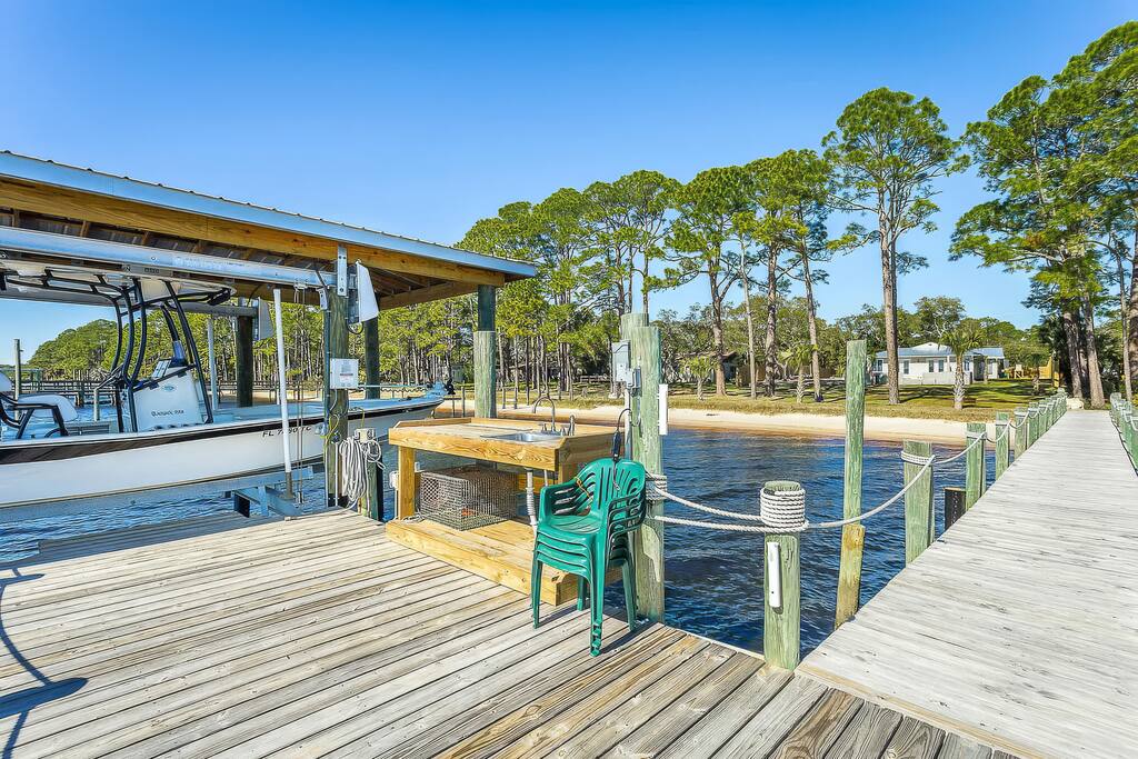 Unwind at a quiet waterfront retreat featuring a private beach and dock on Ochlockonee Bay. This peaceful getaway is ideal for fishing, boating, kayaking, and enjoying beautiful sunset views over the water. Relax on the patio, spend time by the shoreline, or clean your catch at the on-site fish station. Located near marinas, beaches, and state parks, this home is well suited for couples, families, anglers, and nature lovers looking to unplug and enjoy Florida’s Forgotten Coast.